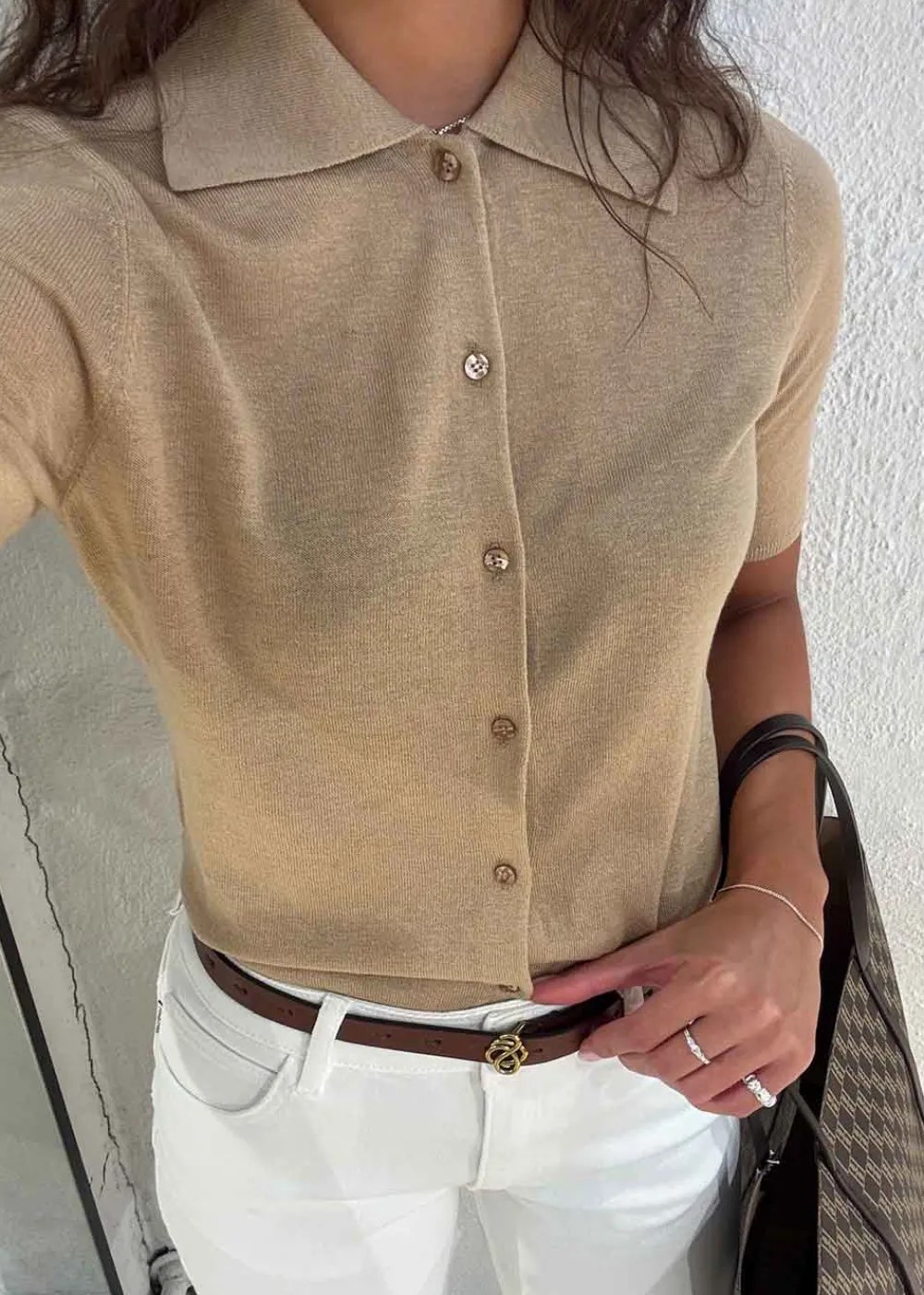 - Tynd strikbluse med krave