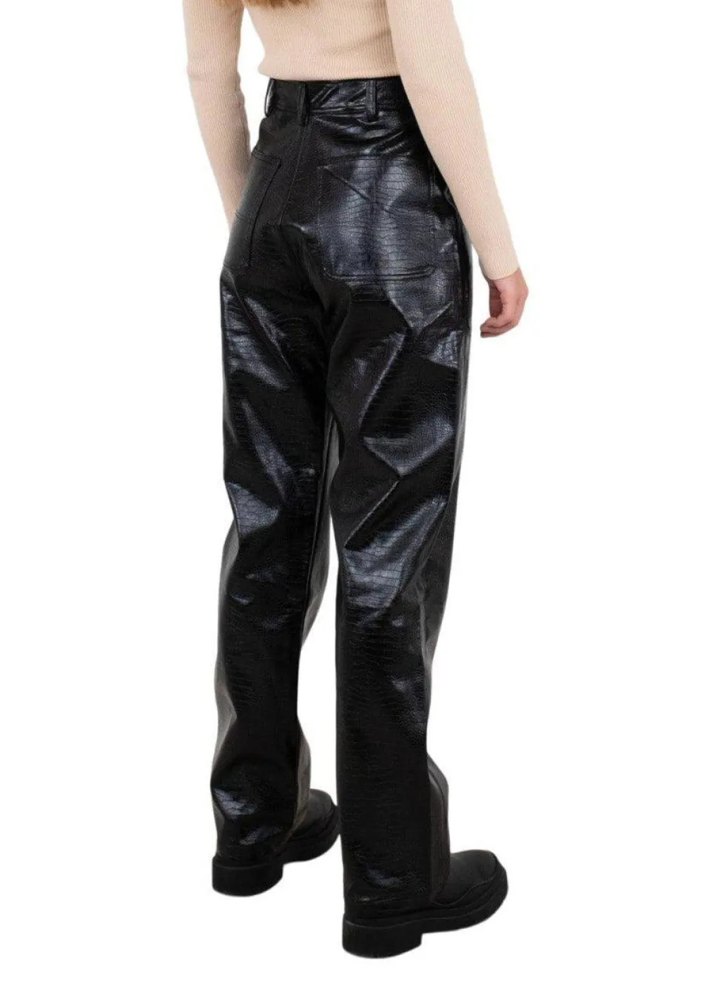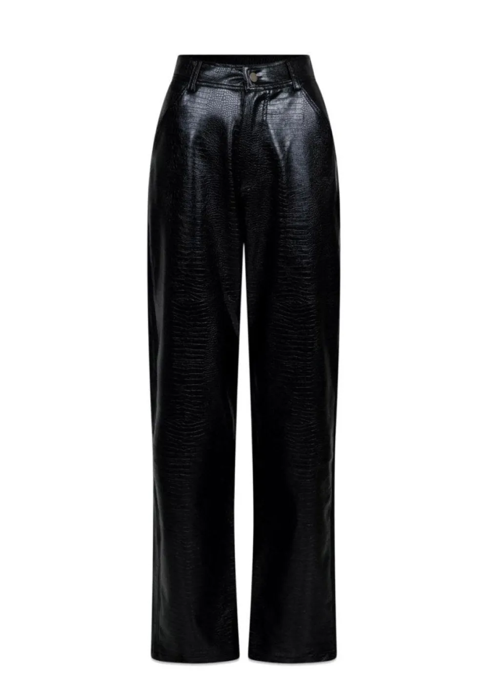 Cool bukser fra Neo Noir i sort med croc struktur. Bukserne har en høj talje og vidde i benene, hvilket giver en super god effekt og pasform.