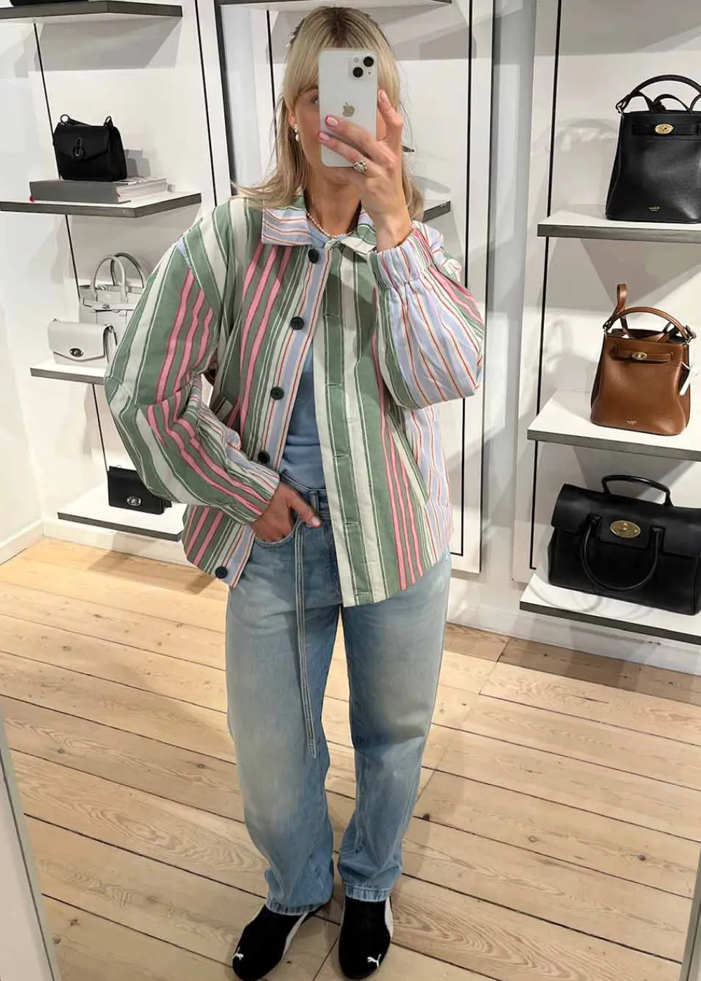 - Obs: Hver jakke er unik da stribernes placering varierer på hvert produkt for at minimere spild