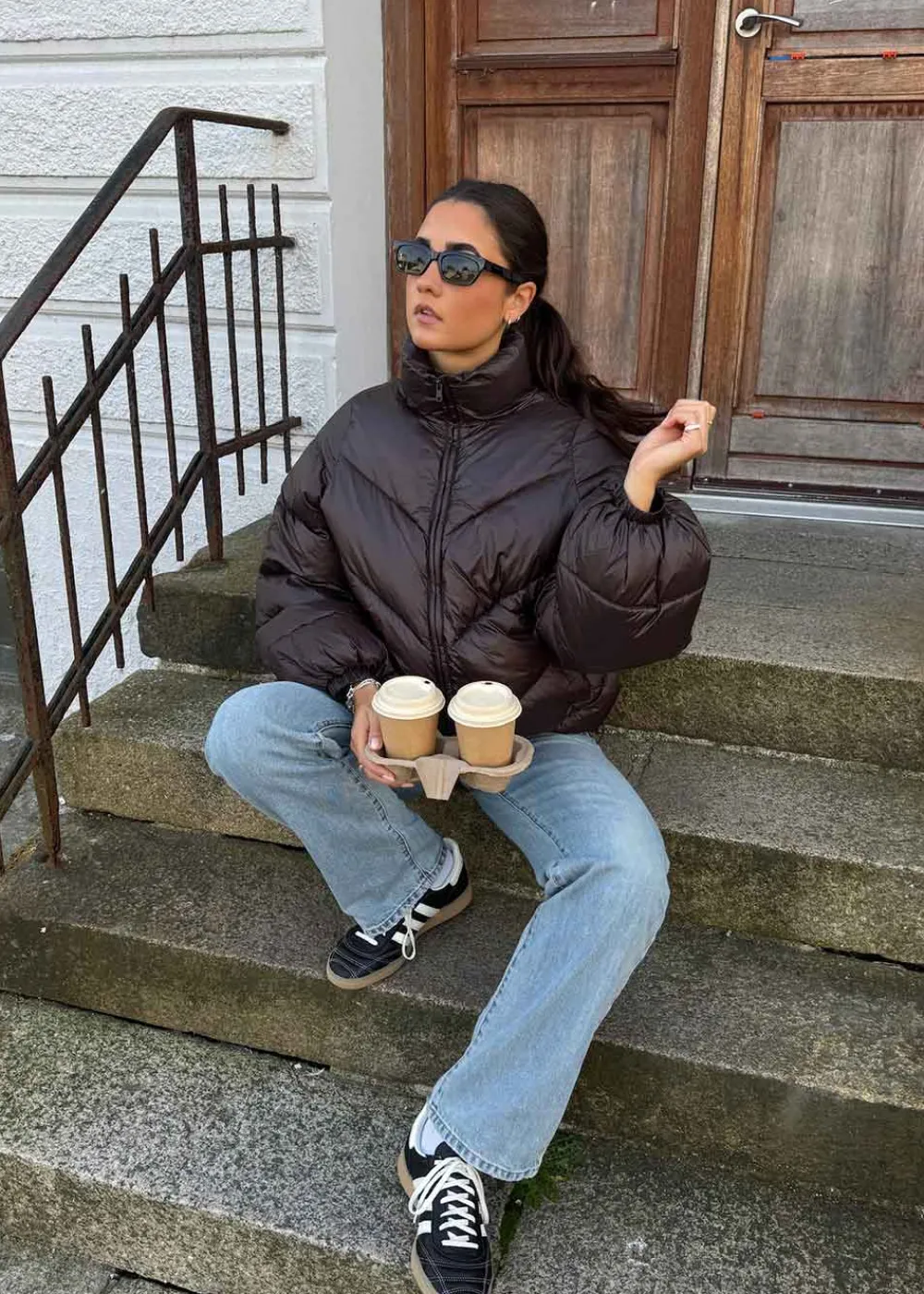 - Pufferjakke i den flotteste chokoladebrune farve