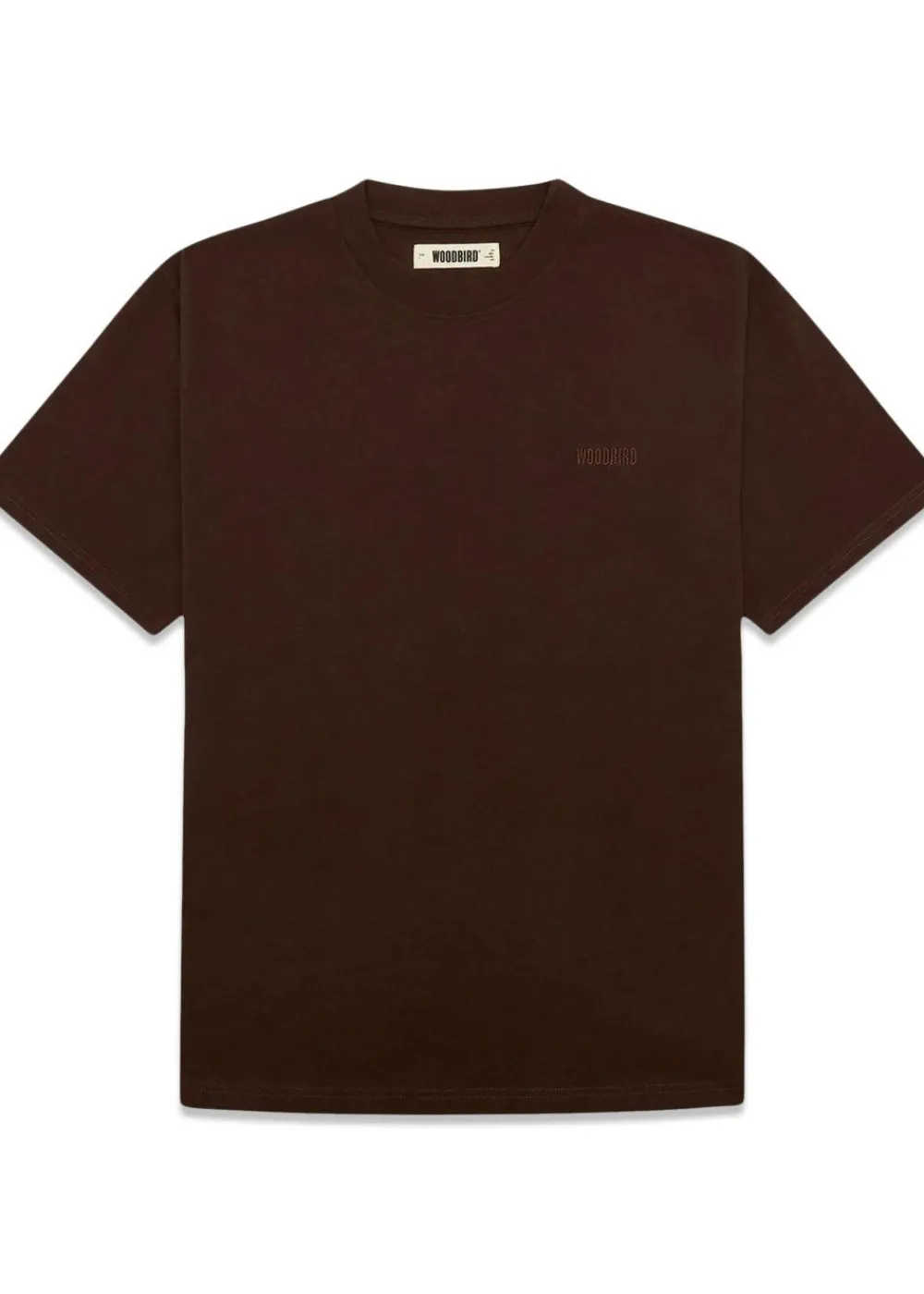 WBBaine Base Tee i brun har rund hals, et tone i tone broderet logo foran og kommer i et boxy fit.