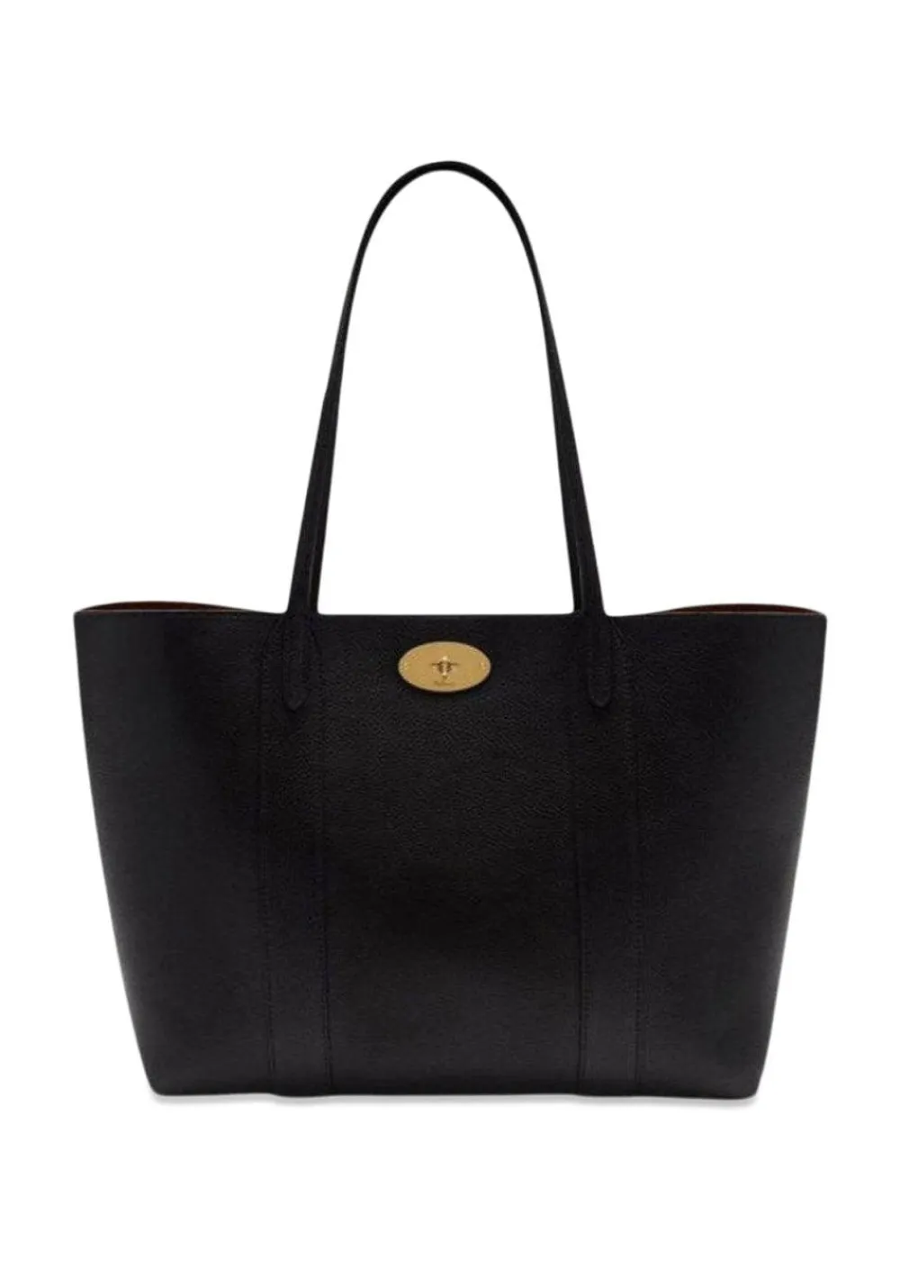 Bayswater Tote Small er en taske i farven black-oak fra Mulberry. Den har den ikoniske Postman’s Lock, to læderhåndtag, et stort rum og en aftagelig pung indeni.