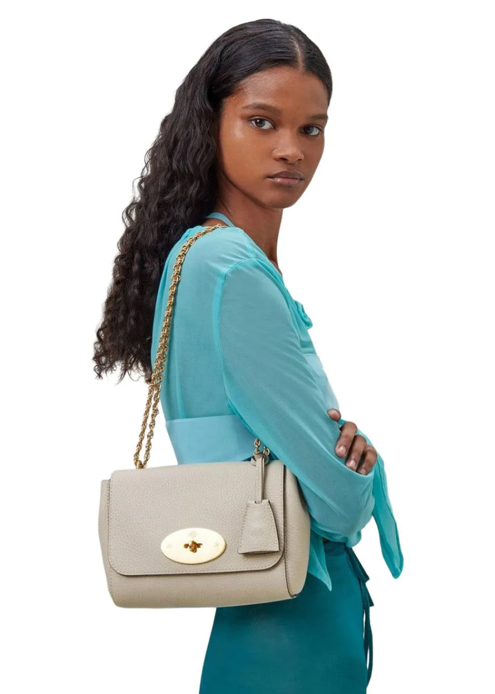 Lily Heavy Grain er en taske i farven chalk fra Mulberry med en skulderrem af læder og kæde. Den har den ikoniske Postman’s Lock, en indvendig lynlåslomme og gyldent hardware finish – den perfekte skuldertaske.