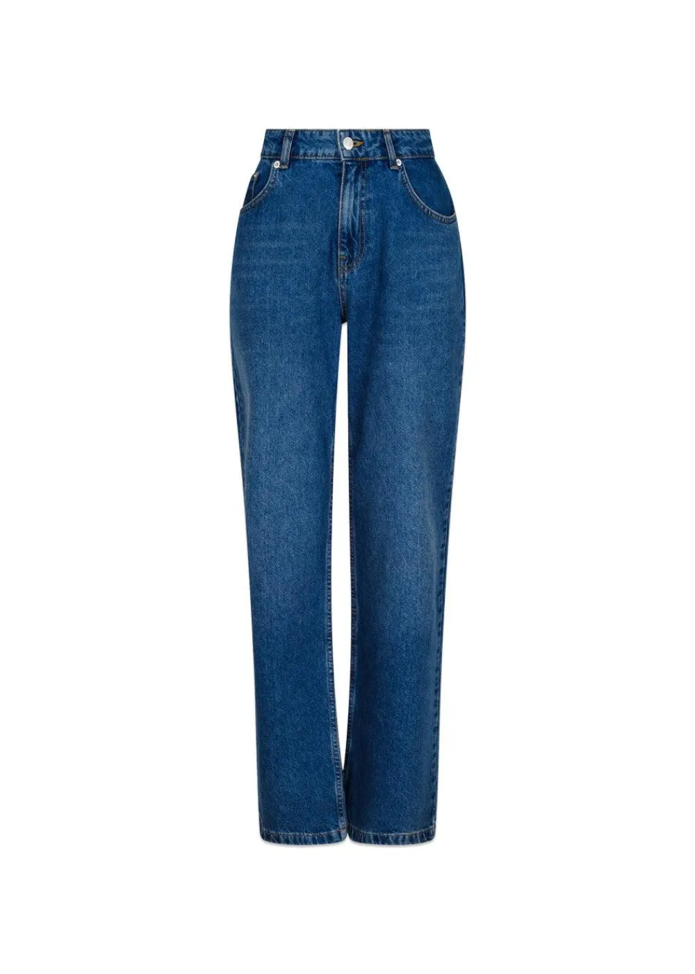 - Denimbukser med mid-waist og lige ben